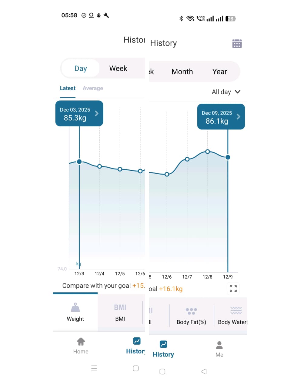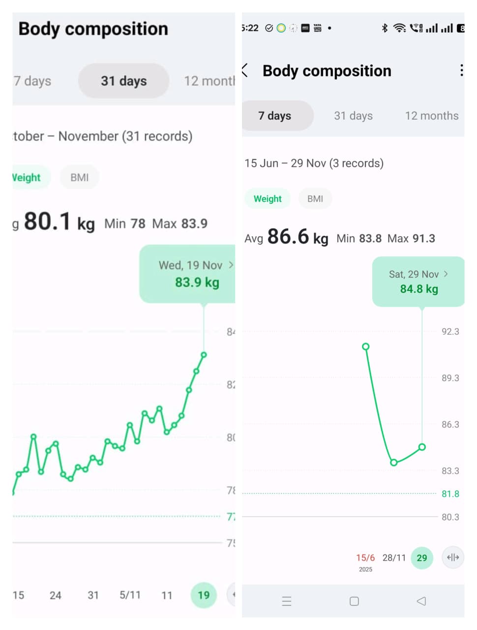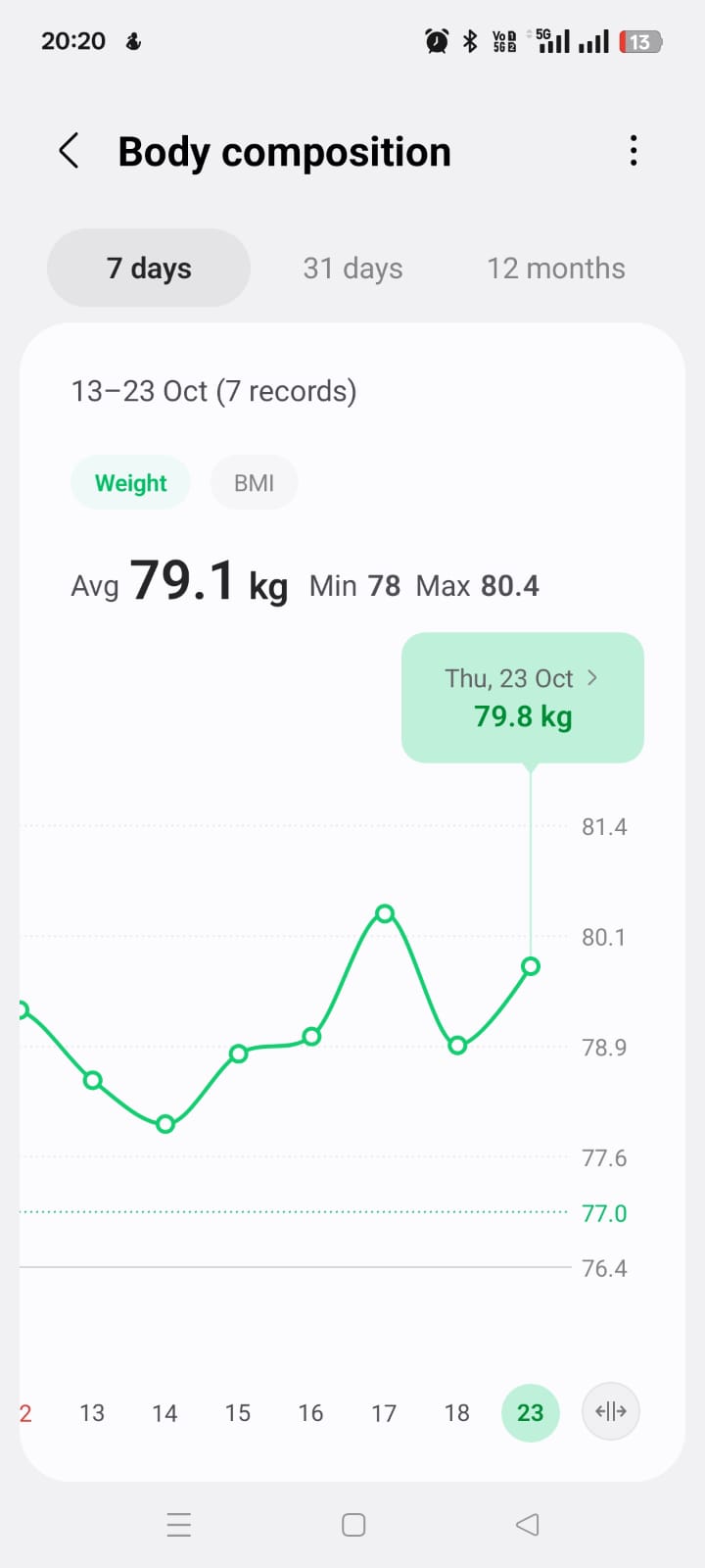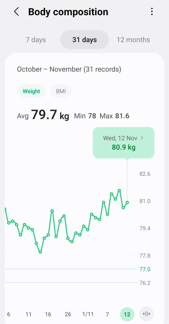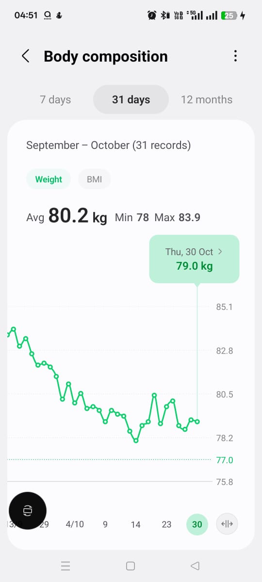 Bappaditya weight trend last 7 days + 0.8 kgs